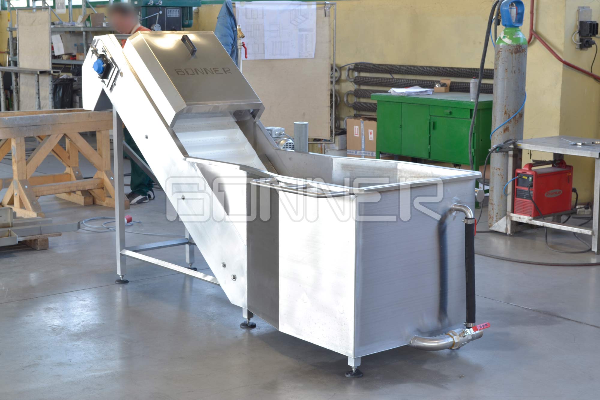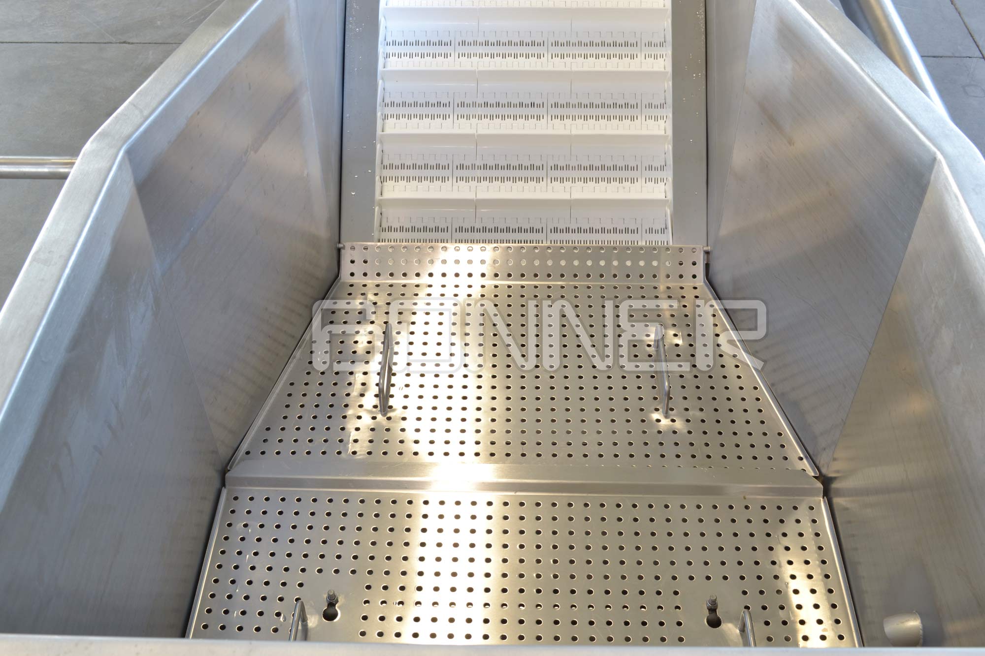 - Първичното миене се осъществява във приемна вана чрез барбутиране със сгъстен въздух;