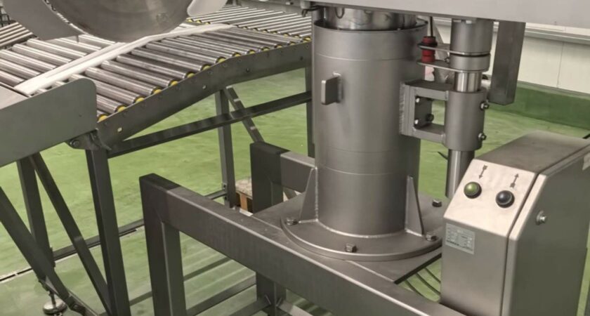 - Belt conveyor for removing full crates;